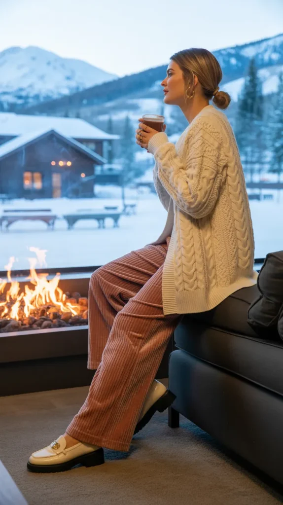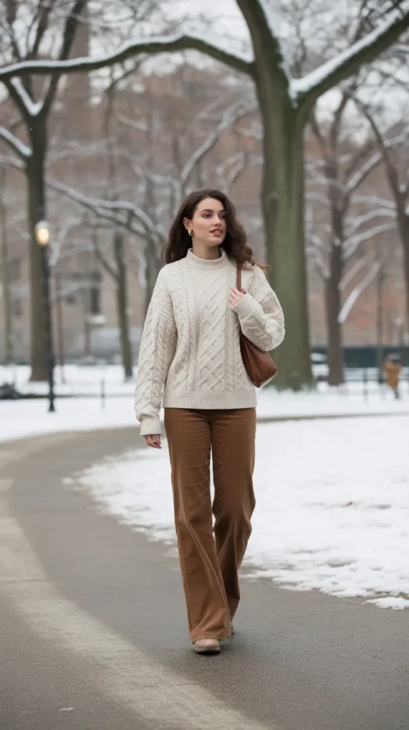 1. Chunky Cable-Knit Sweater with Corduroy Pants