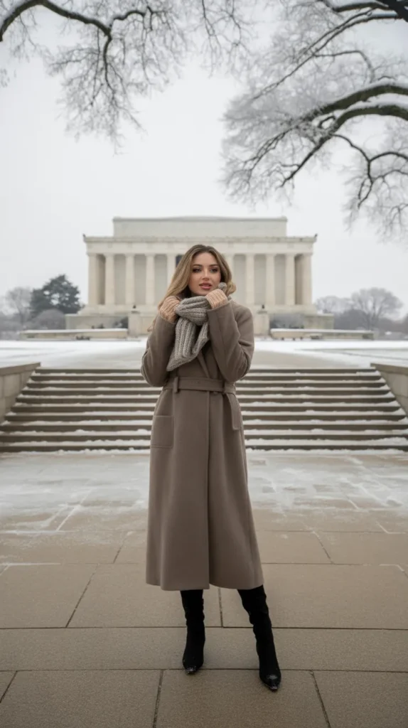Sometimes, all you need is the right accessory. A chunky scarf wrapped over a wool coat and high boots transforms even the simplest winter outfit into something chic. It’s warm, timeless, and full of effortless charm proof that cozy can still be incredibly stylish.