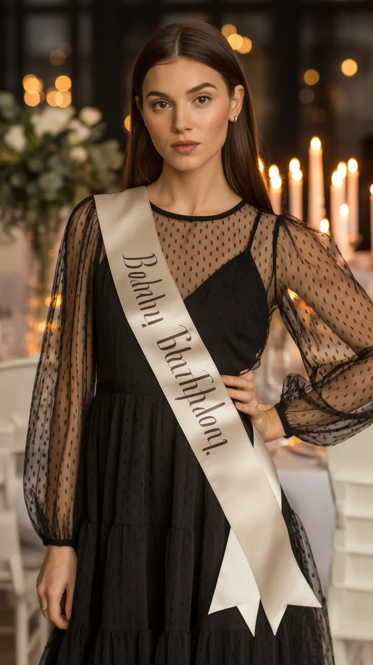 The dress features sleek lines and a fitted silhouette, which enhances your figure beautifully. Adding a birthday sash not only personalizes the outfit but also makes it feel festive. You can choose a sash that matches your dress or goes for a bold contrast to really make a statement.