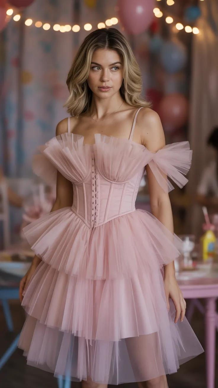 If you want a look that truly pops for your 18th birthday party, a tulle dress with corset detail is a fantastic choice. This style combines elegance with a playful vibe, perfect for celebrating this special milestone.