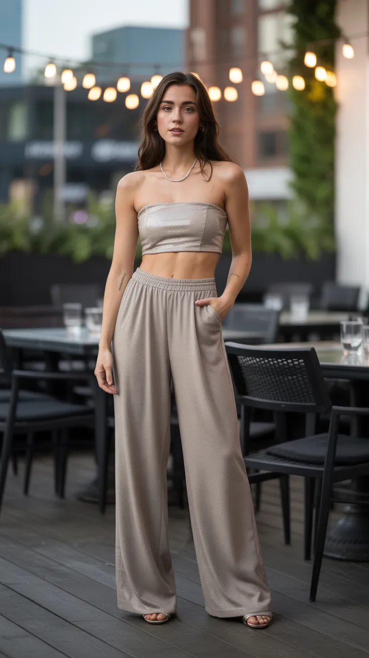 When it comes to 18th birthday outfit ideas, a glitter tube top paired with wide-leg pants is a showstopper. This look combines fun and elegance, making it perfect for your big day. The sparkle of the tube top catches the light, ensuring you shine at your birthday party.