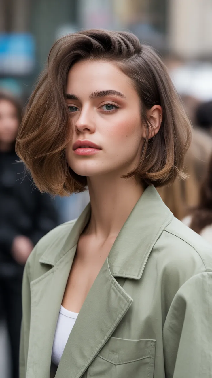 The cropped 90s bob is a fun throwback that brings a fresh vibe. With its layered long hair and a touch of volume, it’s perfect for those who love a bit of edge. This hairstyle for layered hair is easy to style and looks great with a blowout for that extra bounce.