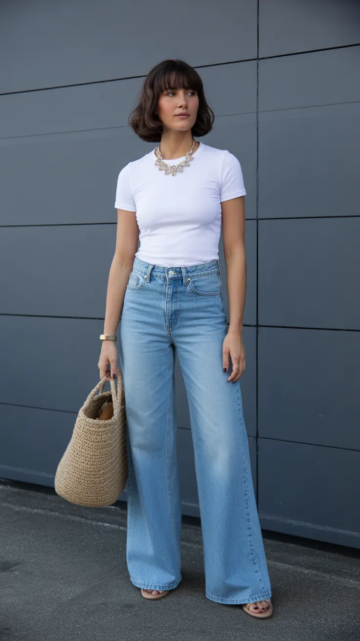 Wide-leg jeans paired with a cropped top create a fun and stylish look. This combo is perfect for casual style outfits, making it easy to dress up or down. Whether you’re heading out with friends or just enjoying a day out, this outfit looks chic and feels comfortable.
