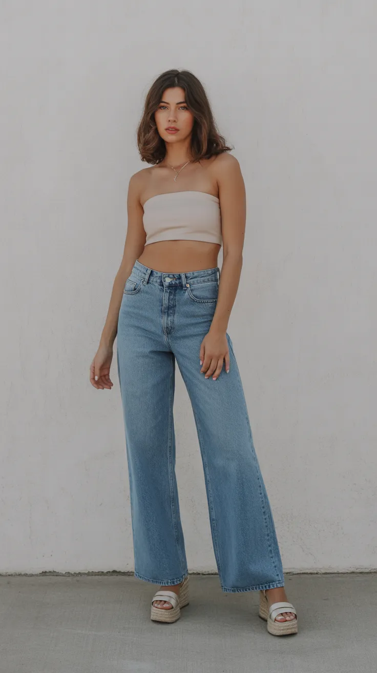 20. Aufits Con Jeans With Wide-Leg Jeans And Neutral Halter Top