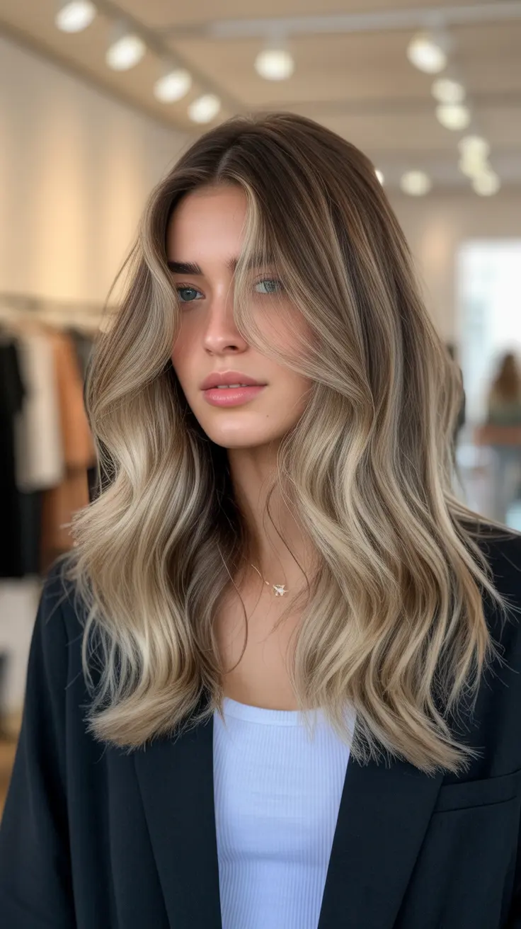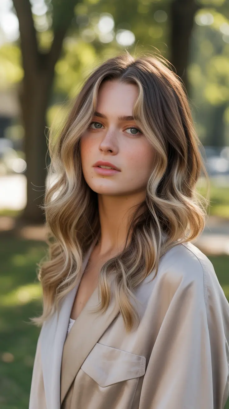 The soft waves enhance the balayage, allowing the colors to shine through beautifully. This hairstyle is not only chic but also low-maintenance, making it ideal for busy lifestyles. You can easily achieve this look with a curling wand or even by braiding your hair overnight.