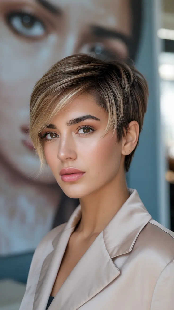 The choppy pixie cut is a fun and trendy choice that pairs beautifully with blonde balayage on brown hair. This style offers a fresh and youthful vibe, making it perfect for those who want to make a statement without too much upkeep.