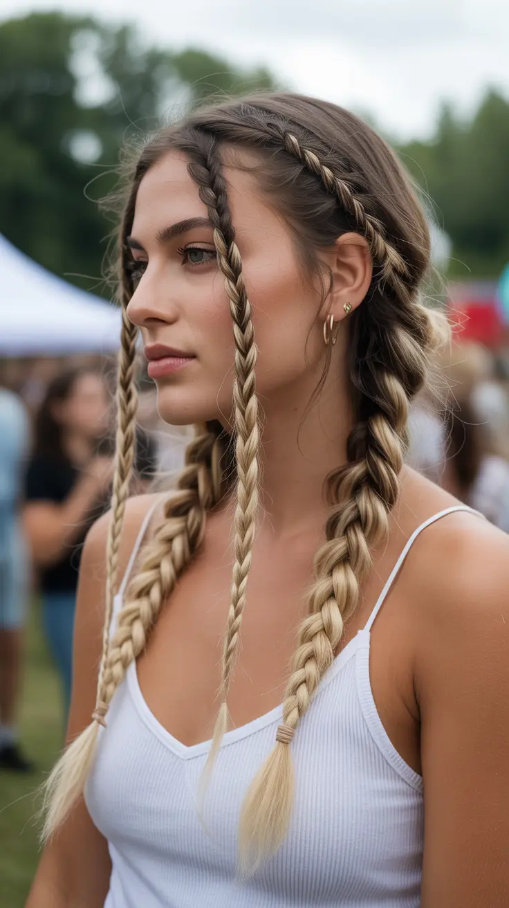 18. Loose Braids With Blonde Balayage On Brown Hair