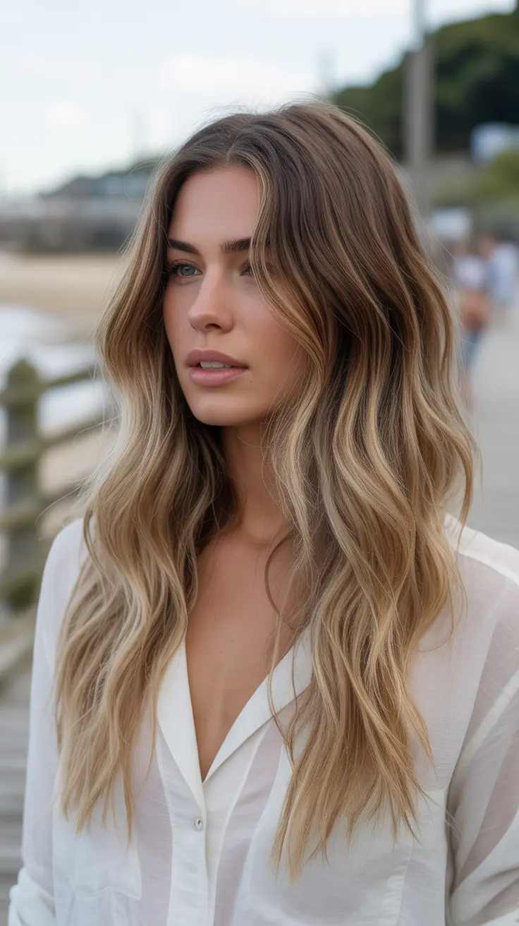 The blend of blonde tones against a rich brown base gives a warm glow, perfect for any season. This style is not just about color; it’s about achieving that effortless look that feels chic and relaxed. Whether you’re hitting the beach or heading out for brunch, this hair inspo is versatile and stylish.