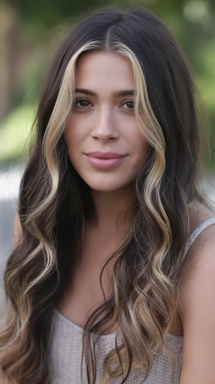 In the image, you can see how the blonde highlights perfectly frame the face, enhancing the overall look. This technique works well with various shades of dark hair, from deep brown to black. It’s a great way to add some fun to your style without going for a complete color change.