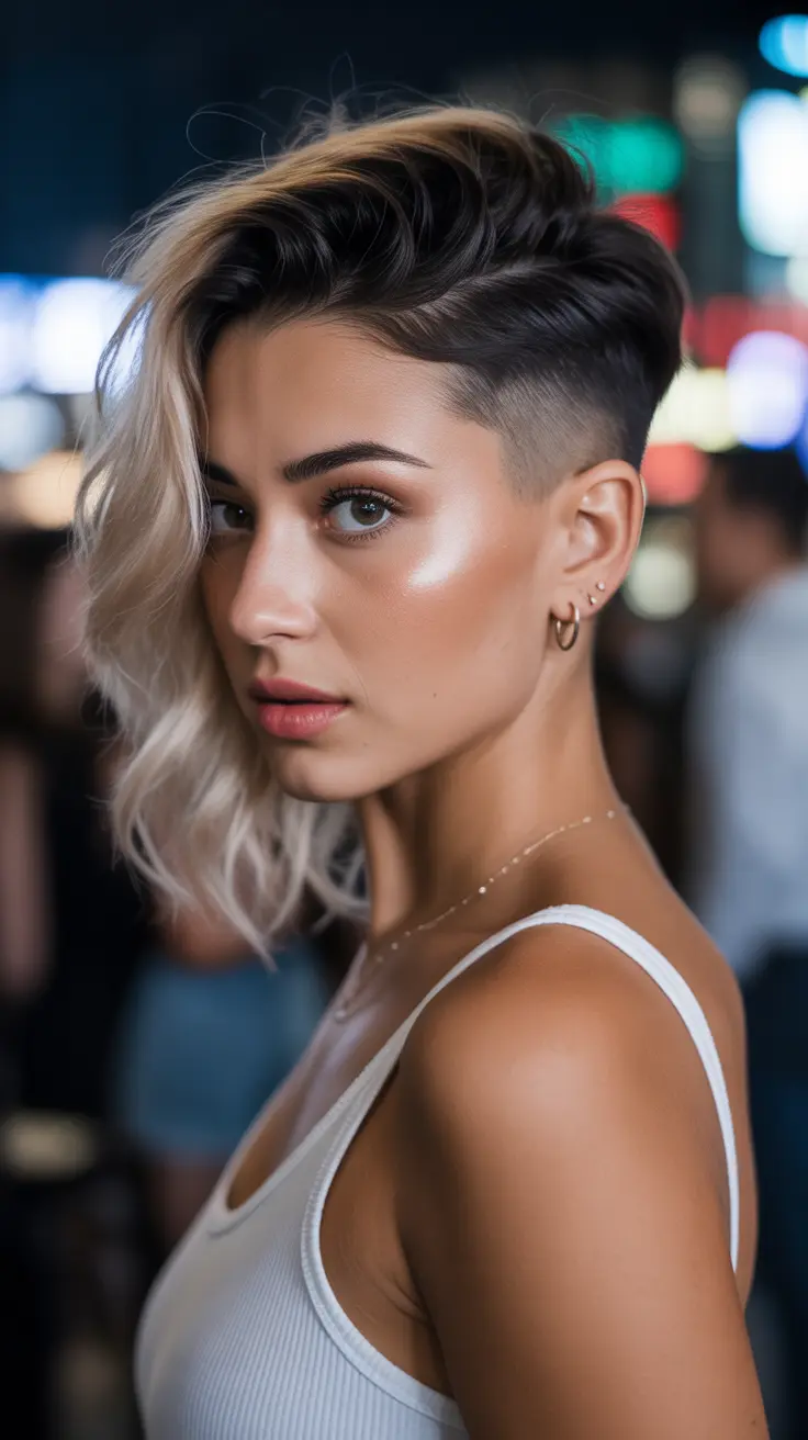 The undercut hairstyle is a bold choice that pairs perfectly with blonde highlights on dark hair. This look combines a striking contrast that draws attention and adds a fresh twist to your style.