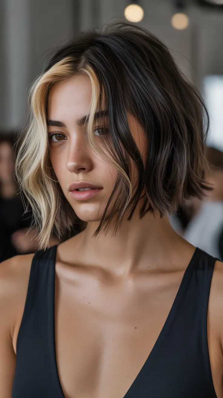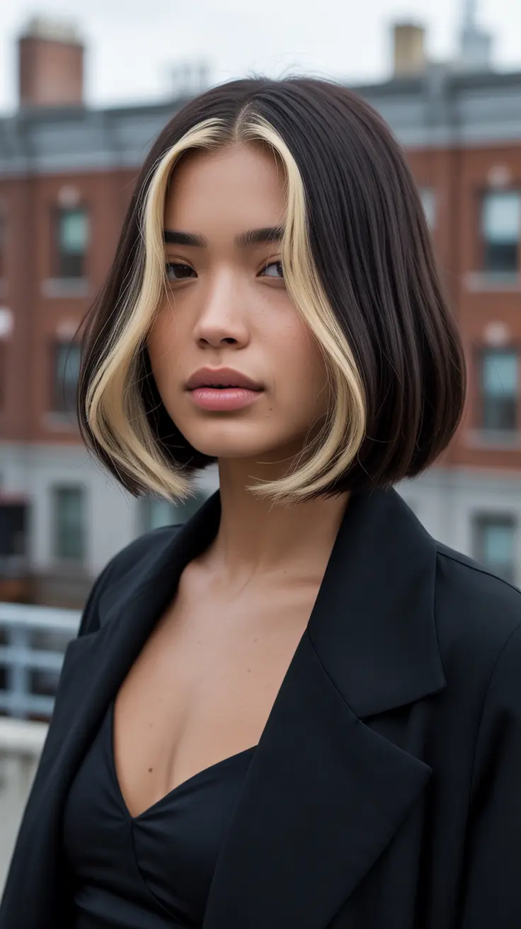 If you’re looking for dark hair inspo, this sleek lob is a fantastic option. The blend of dark hair with blonde highlights creates a fresh and modern vibe that many will admire. Whether you’re considering a subtle touch or bold streaks, this hairstyle can be tailored to fit your personal style.