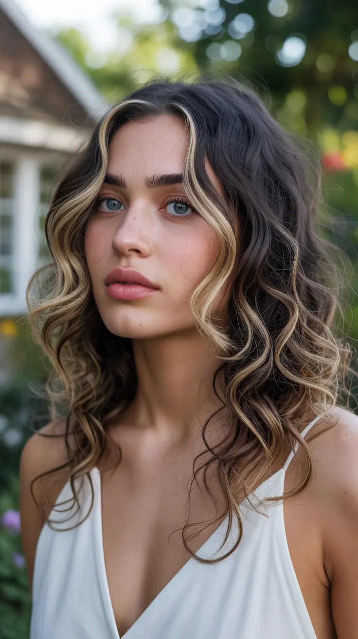 Blonde highlights on dark hair can create a stunning contrast that adds depth and glow. When styled in loose curls, these highlights really pop, giving your hair a vibrant, dimensional look. The soft waves enhance the highlights, making them shine even more.