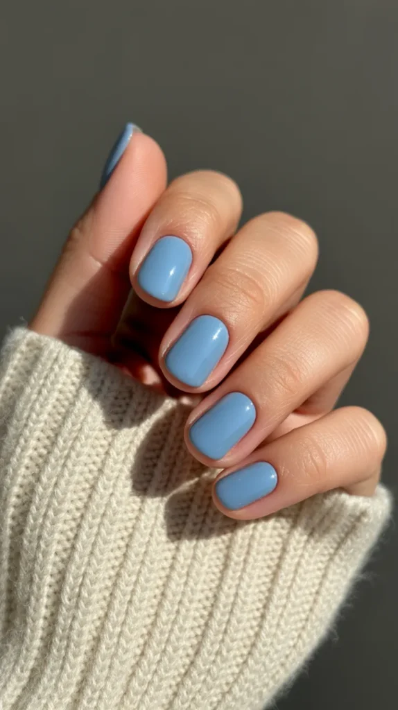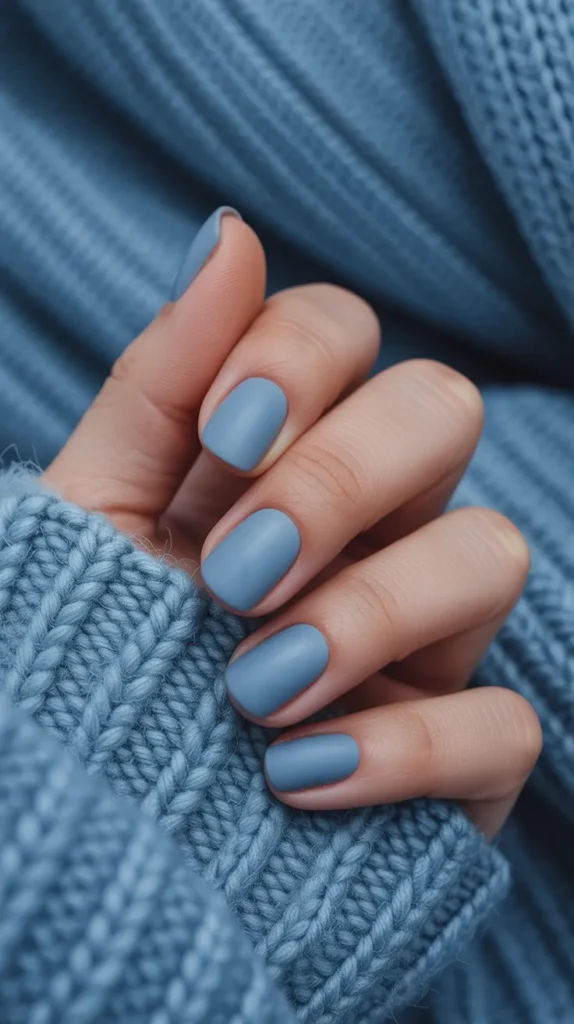 Soft denim matte nails give casual-chic vibes for winter days. The light blue hue feels relaxed, while the velvety matte texture keeps it modern. They pair perfectly with oversized sweaters and hot lattes. ☕💙