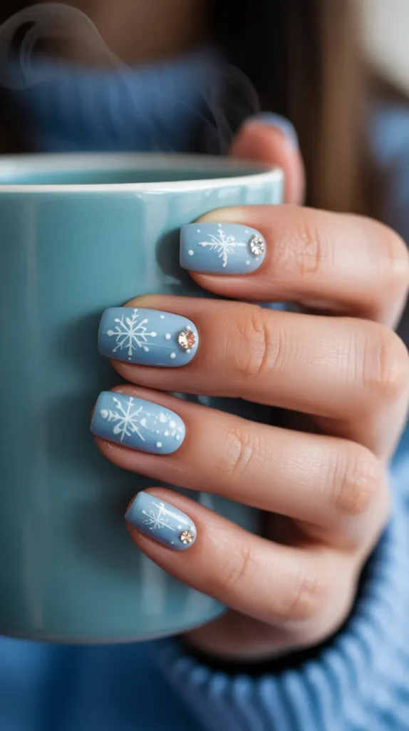 💅 Try minimal art: Simple lines, dots, or snowflake accents keep the look chic, not busy.