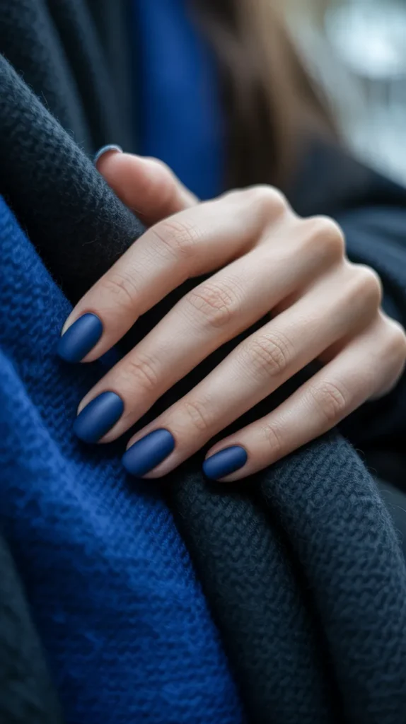 Navy matte gel nails bring understated power to winter. The deep tone feels timeless, polished, and works with every outfit. It’s the manicure version of a sleek winter coat minimal, classy, and so easy to wear. 🌌