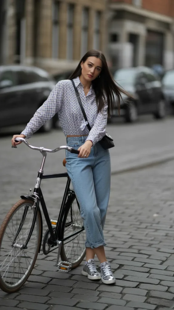 Effortless cool-girl energy in one move half-tuck your printed shirt for a relaxed, confident finish. Whether stripes, polka dots, or abstracts, the pattern adds depth and character. It’s the perfect casual outfit that feels thoughtful without trying too hard.