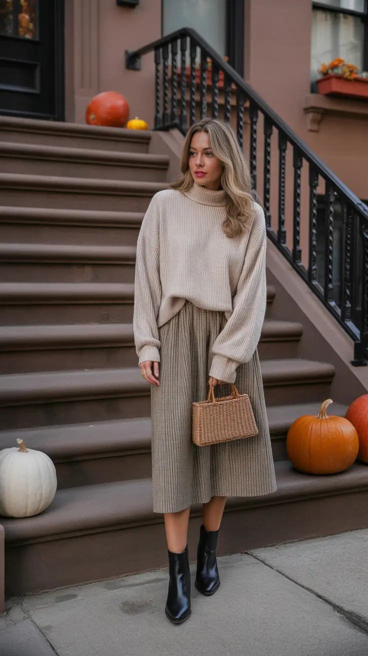 To complete the look, ankle boots add a touch of chic sophistication. This combination is not only stylish but also practical, making it a go-to choice for comfy autumn looks. If you’re looking for cozy outfit inspo, this is a fantastic option to consider for your fall wardrobe!
