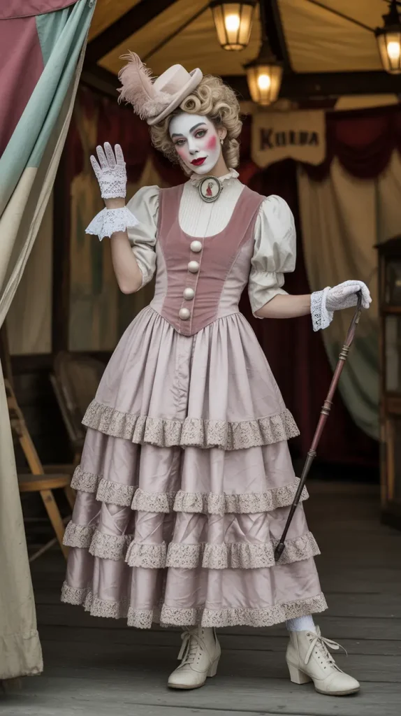 End on a dramatic note with the Victorian Circus Lady Clown. A long ruffled skirt, lace gloves, high-neck blouse, and tiny hat make this feel vintage-chic. Add porcelain-style makeup for that eerie but elegant finish. Isnβt it fun when costumes transport you to another era? This is theatrical, stylish, and perfect for anyone who wants their clown style to feel unique. Itβs classy yet mysterious, making it a standout clown Halloween costume.