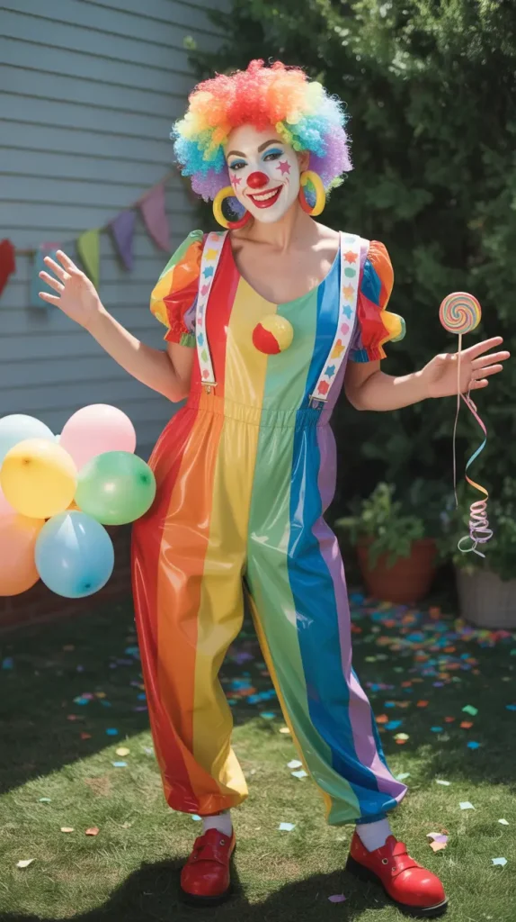 For those who want pure joy, the Rainbow Party Clown is a must. Picture a bright wig, oversized shoes, colorful suspenders, and balloons as props. Doesnβt that just scream fun? This version leans into classic clown cheer but still feels stylish with the right accessories. Add glitter eye makeup or rhinestones to glam it up. Itβs the perfect clown style for anyone who wants their costume to feel festive, happy, and party-ready.