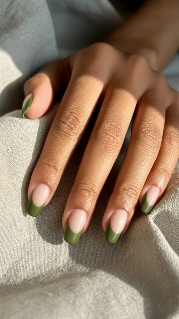 French fades are subtle, but using olive tips makes them autumn-approved. The way the color melts into the nude base feels soft and chic. Itβs polished enough for formal events but still playful for everyday wear. If you want to try olive nails without going full solid, this is the perfect pick. πΏ Understated but undeniably stylish.