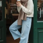 Pairing a classic blue denim jacket with a soft pleated midi skirt creates a look that’s effortlessly chic. The mix of structured denim and flowing pleats works beautifully for lunch dates, afternoon coffee meetups, or casual Fridays at the office.