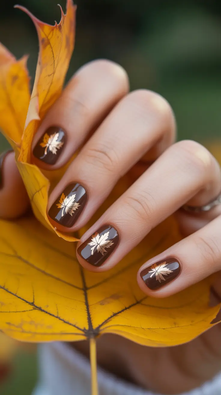 These nails are great for anyone looking for cozy nail ideas that reflect the beauty of the season. The intricate leaf designs can be achieved through nail stickers or hand painting, making it a versatile option for your fall manicure.