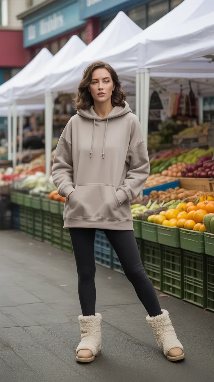 Leggings paired with sherpa boots create a cozy yet chic look perfect for autumn. The soft texture of the boots adds warmth, making them ideal for cooler days. This outfit is not just stylish; it’s also super comfortable, allowing you to move freely while looking great.
