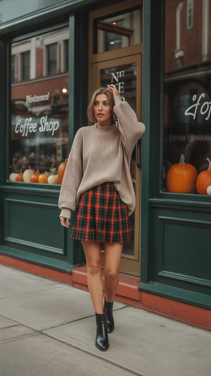 Fall is the perfect time to embrace cozy layers, and a plaid skirt paired with ankle boots is a stylish choice. This outfit combines warmth and chic vibes effortlessly. The plaid pattern brings a classic autumn feel, while the ankle boots add a modern twist.