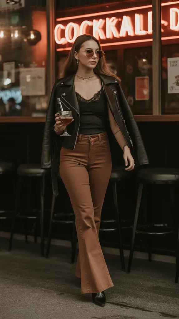 These flare pants outfit ideas focus on clean shapes, bold but wearable textures, and tops that bring just the right amount of balance. Think fitted tanks, satin blouses, cropped jackets, and structured knits each pairing designed to help you stand out in a polished, feminine way. Whether you’re stepping into a lounge, meeting friends for cocktails, or heading to a dinner date, these combinations offer stylish inspiration for nights where you want the perfect mix of elegance and edge.