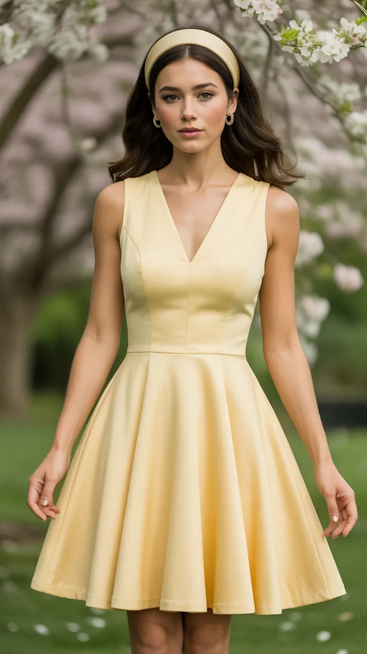 5. Light Yellow Fit-And-Flare Dress With Headband