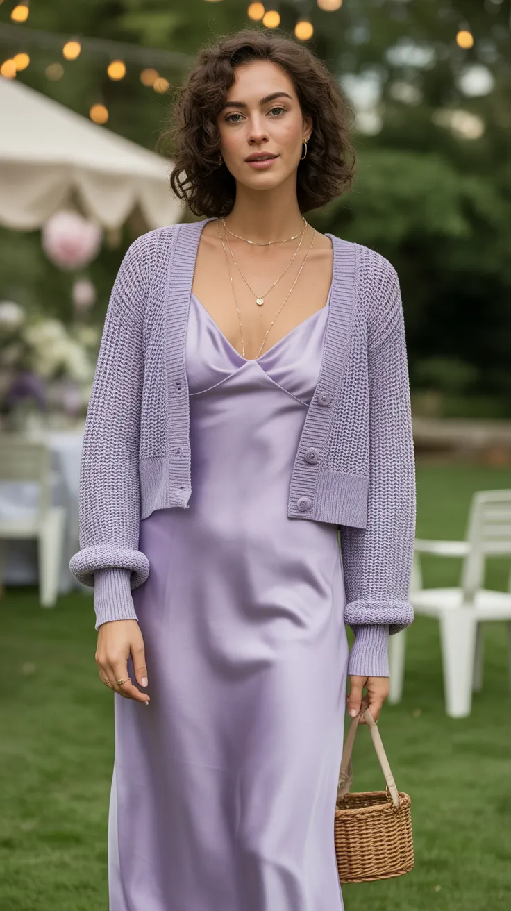 8. Lavender Slip Dress With Cropped Cardigan