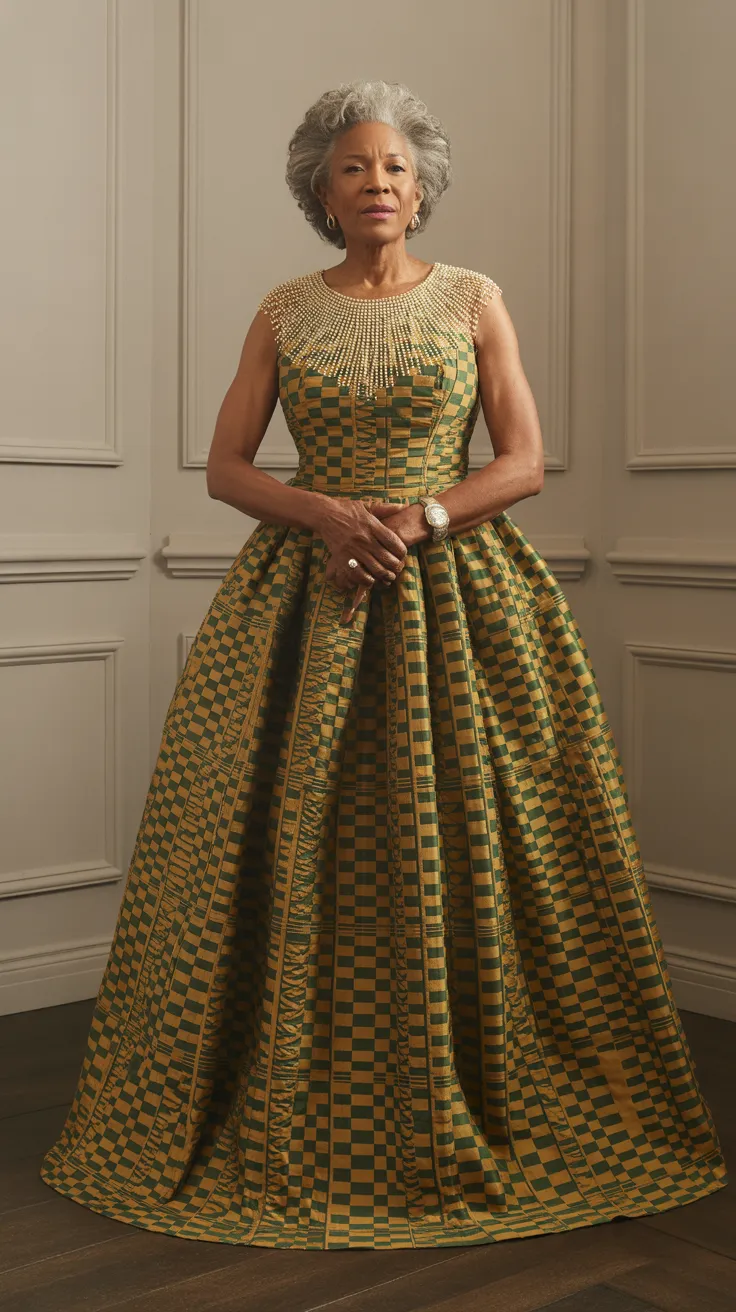 As fashion evolves, the latest Kente styles continue to embrace tradition while incorporating modern elements. This gown beautifully represents that blend, making it a timeless piece for older women who want to celebrate their heritage with grace.