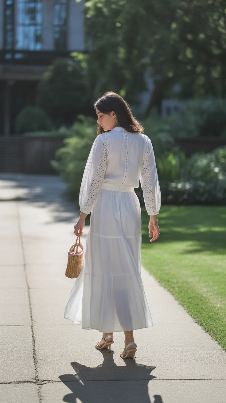 Pairing a long sleeve top with a flowy skirt is a great way to achieve timeless outfit inspo. The light fabric of the blouse contrasts beautifully with the skirt, making it a comfortable choice for warm days. This look is easy to style and can be accessorized with simple jewelry and sandals for a laid-back feel.