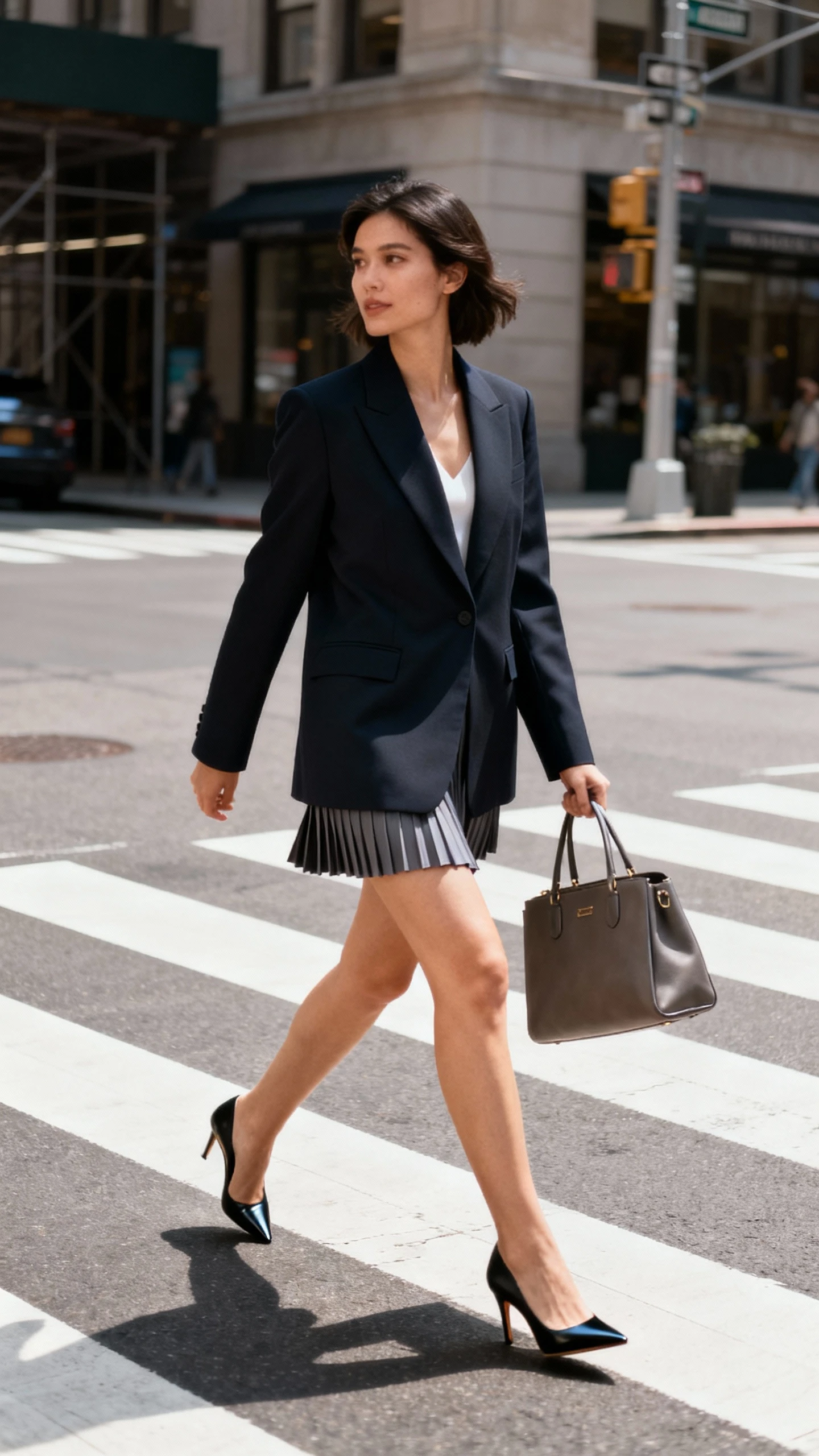 1. Power Blazer + Pleated Mini That Means Business (But Still Flirts)