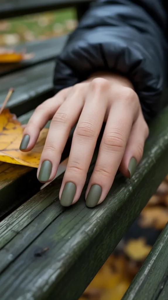 Matte olive green nails capture the earthy calm of late fall. They’re minimalist but full of character, offering a muted take on winter nails style. This shade feels organic, grounded, and ideal for transitioning seasons. 🌿