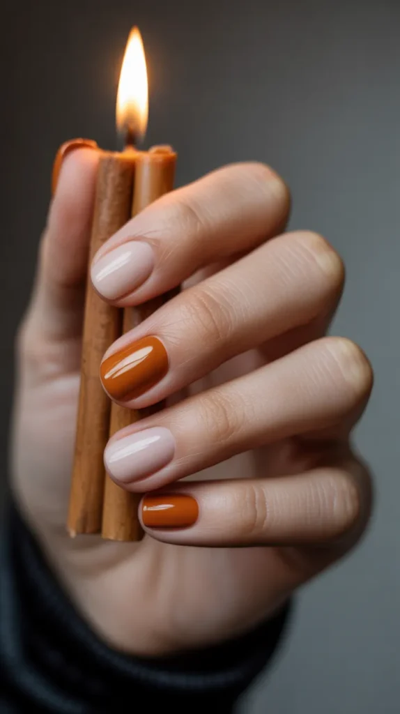 ☕ Choose cozy tones: Rich browns, caramels, and terracottas give true November nails warmth.