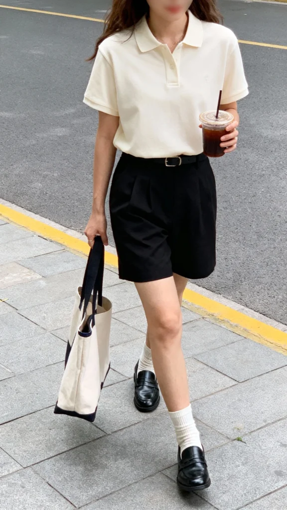Preppy, but make it now. The polo feels classic, and the loafers are quietly luxe—together they read smart and polished without being stuffy.