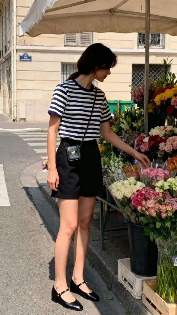 Channeling an easy French-girl vibe without trying too hard. The stripes add personality, and the slingbacks bring a hint of polish. The result? So chic, so simple.