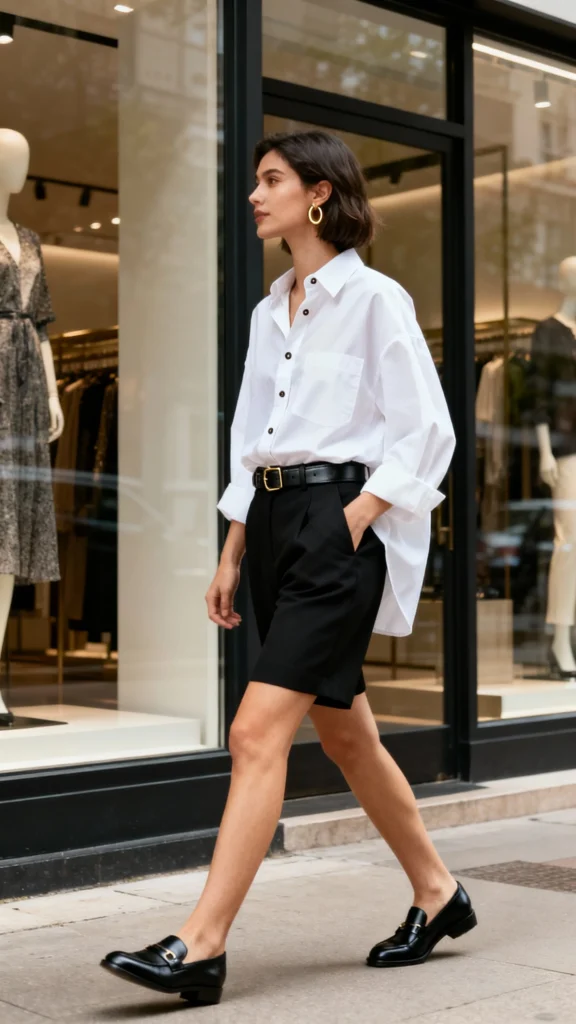 - Choose shorts with a 3–5″ inseam for a chic proportion that still feels grown-up.