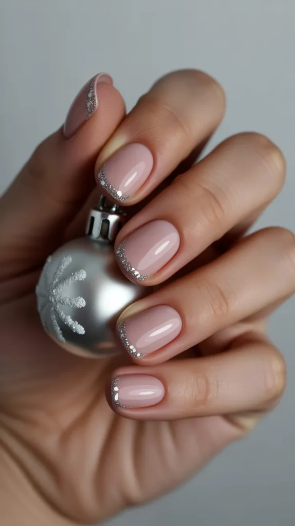 A dusty rose French manicure is subtle but stunning. The silver glitter edge adds a twinkle of winter sparkle without being too flashy. It’s timeless, polished, and gives that “effortlessly put together” vibe. ✨