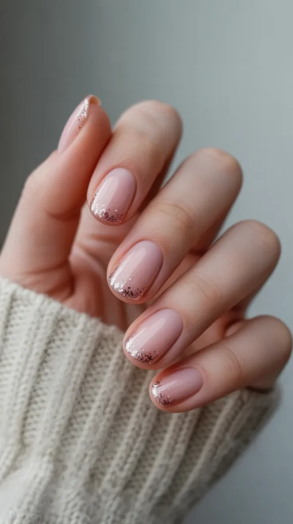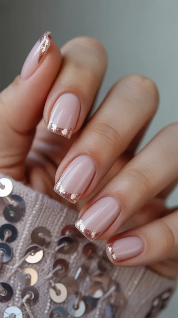 Pale pink nails with rose-gold glitter tips feel effortlessly luxe. The shimmer is soft enough for daily wear but still glam for nights out. It’s the manicure equivalent of wearing jewelry classy and radiant. ✨