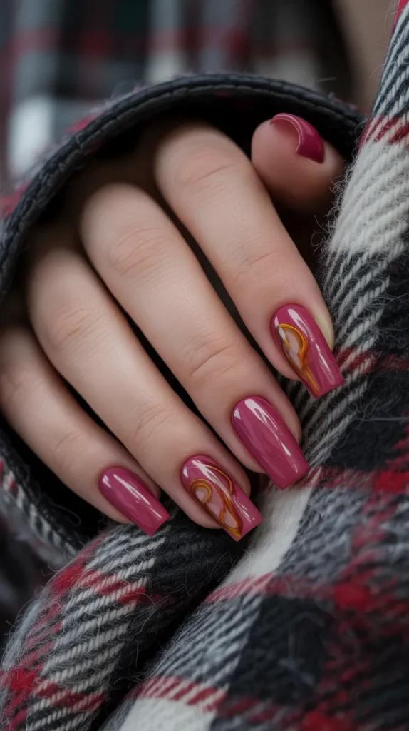 Deep berry pink nails bring warmth and confidence to winter days. The glossy finish adds instant glam while keeping things refined. It’s bold but still feels totally wearable the kind of color that turns heads. 🍓