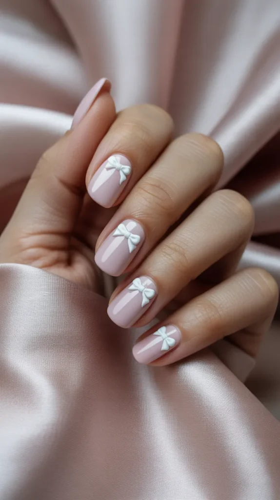 Minimalist bow nails are pure coquette-core soft, girly, and charming. The tiny white bows against pale pink give that playful, feminine edge. It’s perfect for date nights or just adding a sweet touch to your winter look. 🎀