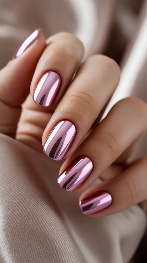 Pink chrome nails are modern, bold, and oh-so-polished. The mirror-like surface reflects winter light beautifully, making them a total statement piece. They’re futuristic yet feminine perfect for parties or date nights. 🌸