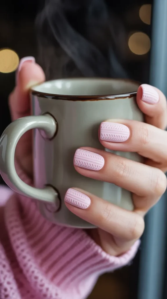 Pink winter nails are proof that you don’t need bold colors to make a statement. From frosty blush tips to cozy sweater textures, every shade of pink brings its own charm. These styles strike the perfect balance between elegance, comfort, and trend, making them ideal for the cold season.