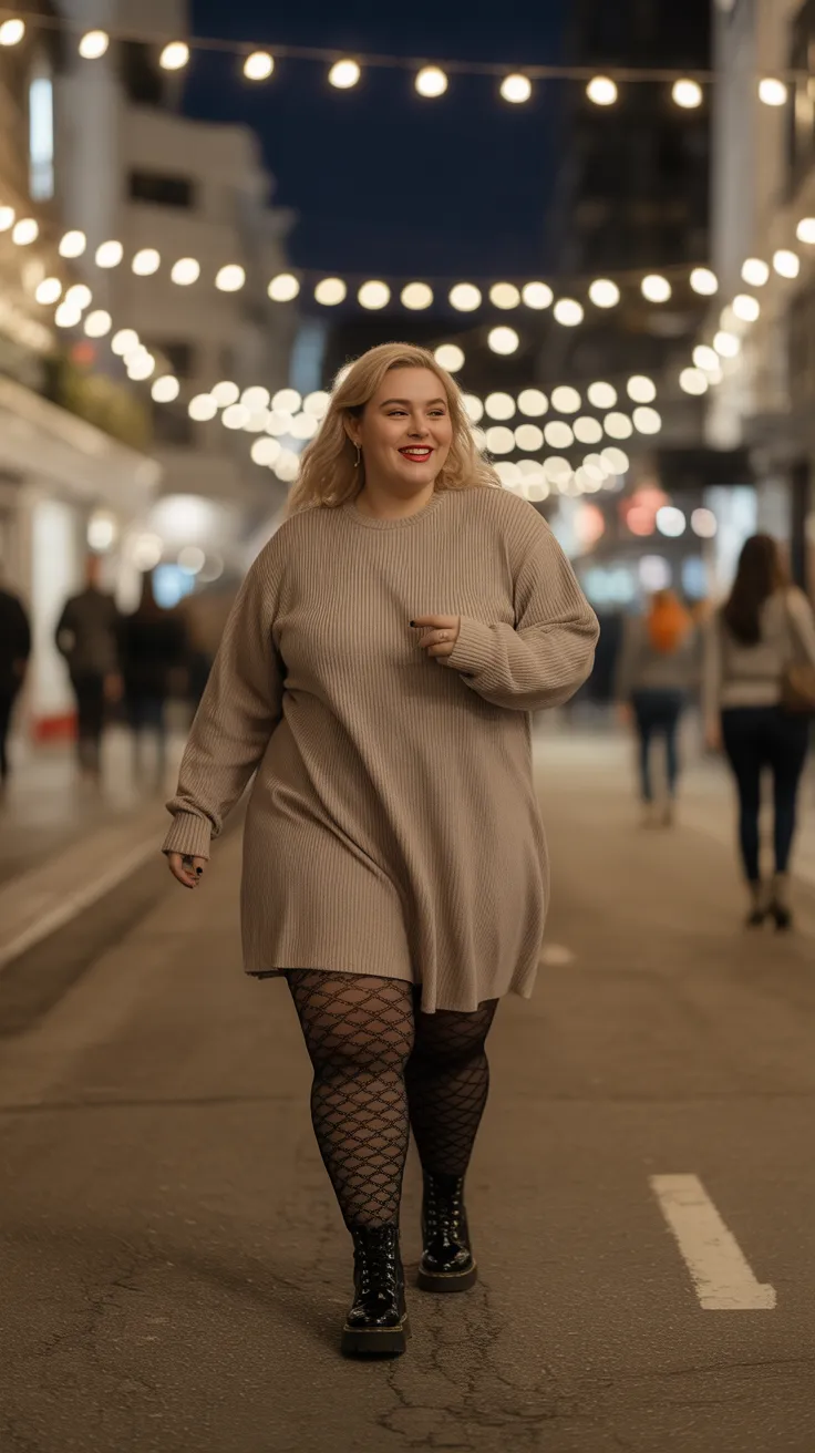 14. Sweater Dress With Patterned Tights And Combat Boots