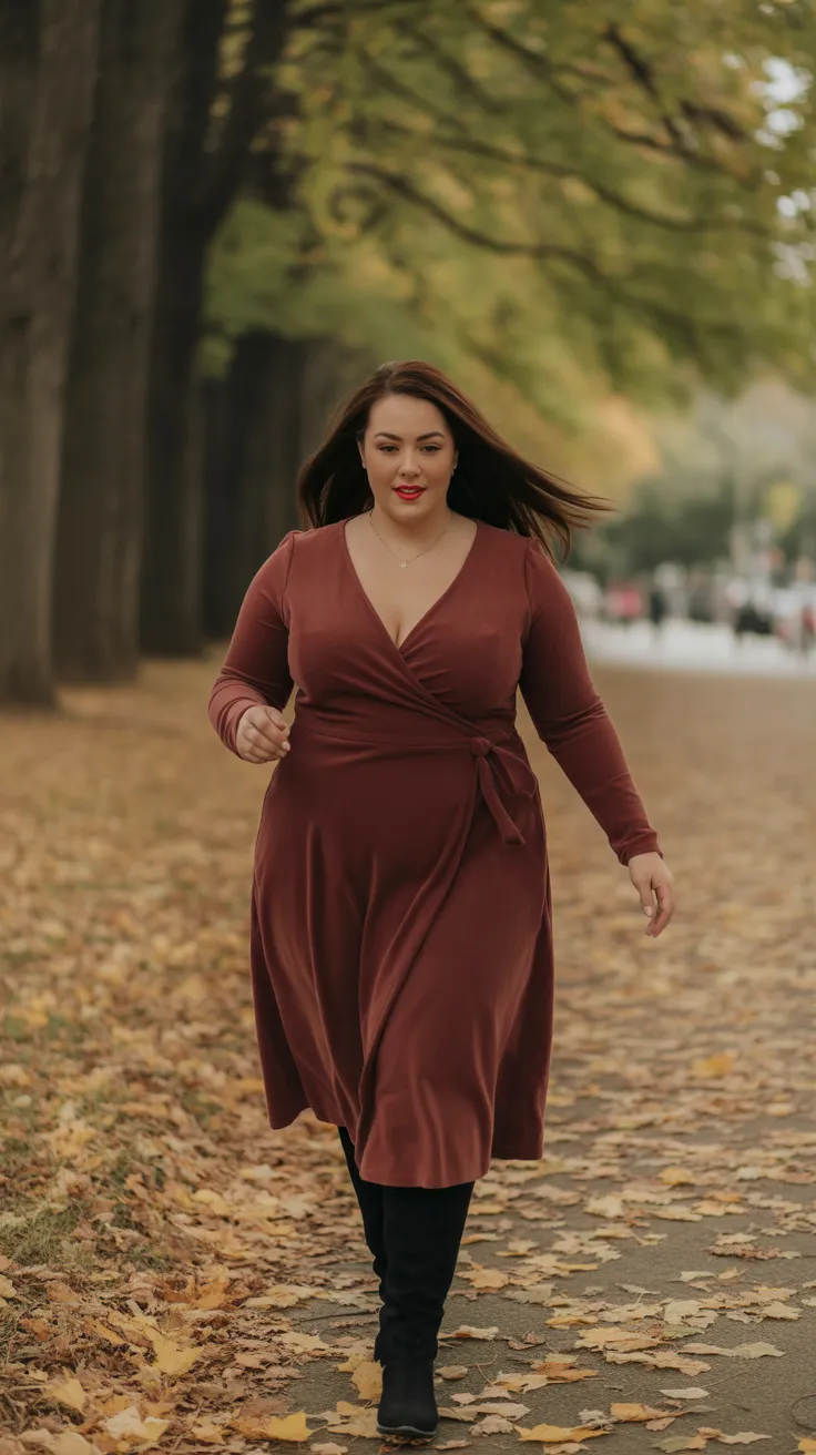 The wrap midi dress is a fantastic choice for fall. Its warm, rich color adds a cozy touch to any wardrobe. This style flatters curves beautifully, making it a go-to for plus size fall outfits.