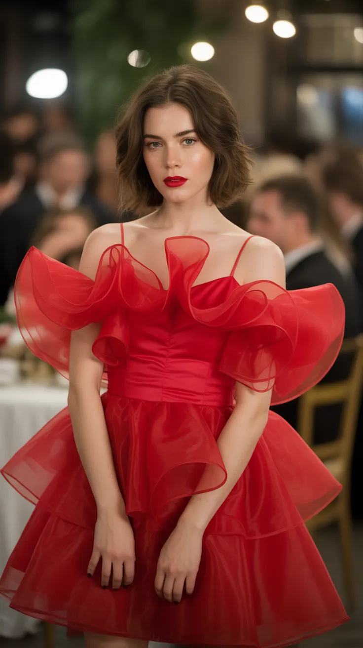The layered red organza dress is a stunning choice for any birthday celebration. Its flowing fabric adds a touch of whimsy, making it perfect for a party night dress. The ruffles create a playful silhouette that flatters various body types.