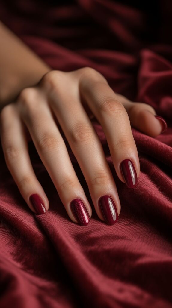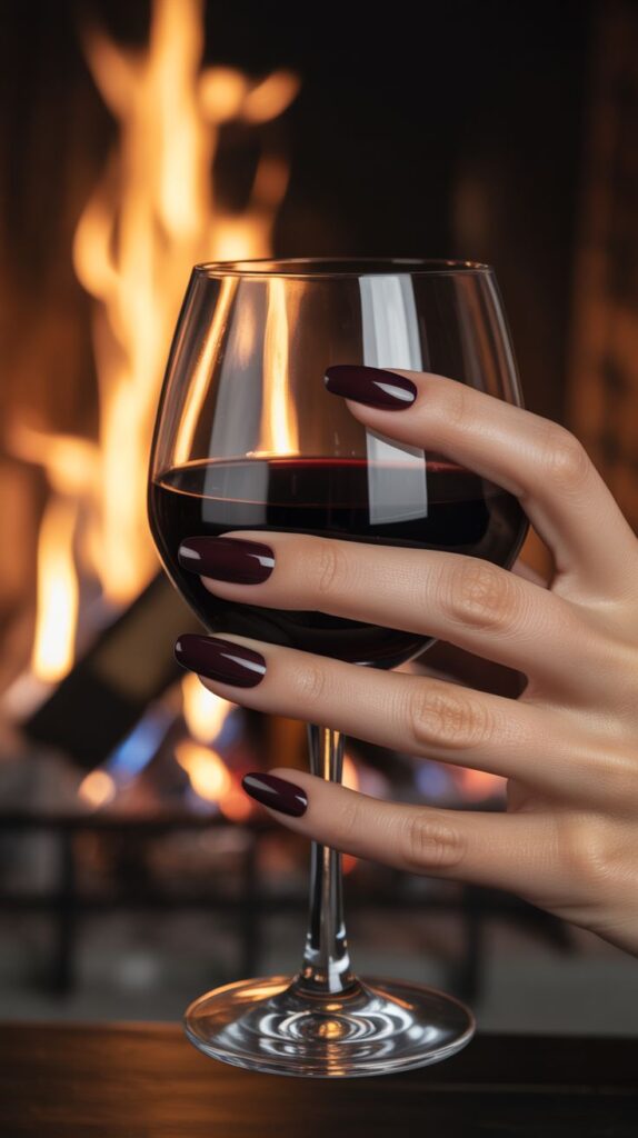 For those who love understated glam, deep wine tones offer depth and elegance. Their dark shine complements winter outfits perfectly and looks especially stunning under warm indoor lighting.