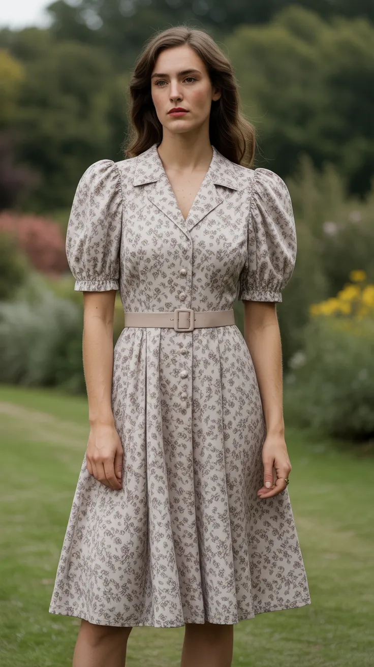 1. 1940S Tea-Length Dress With Puff Sleeves